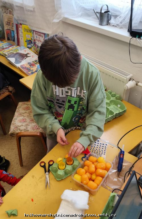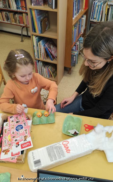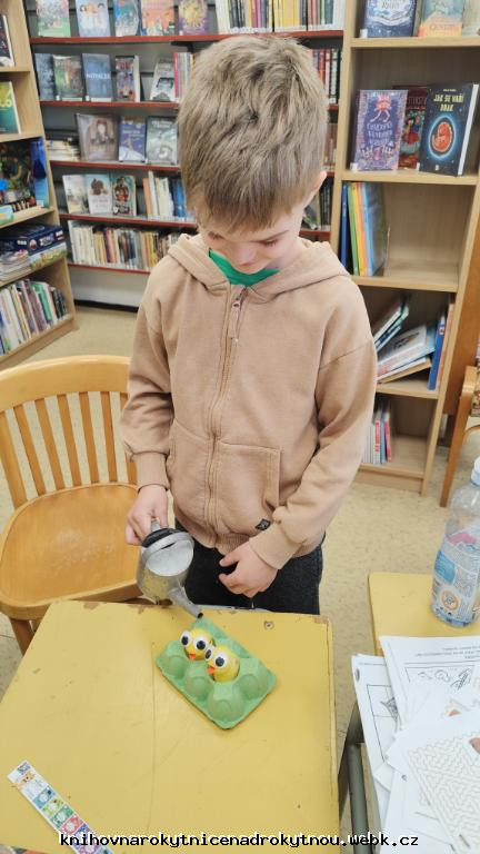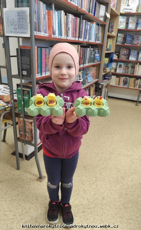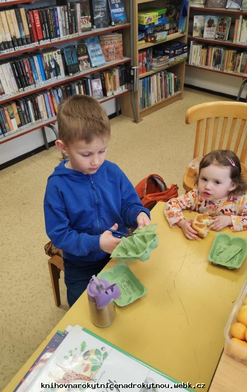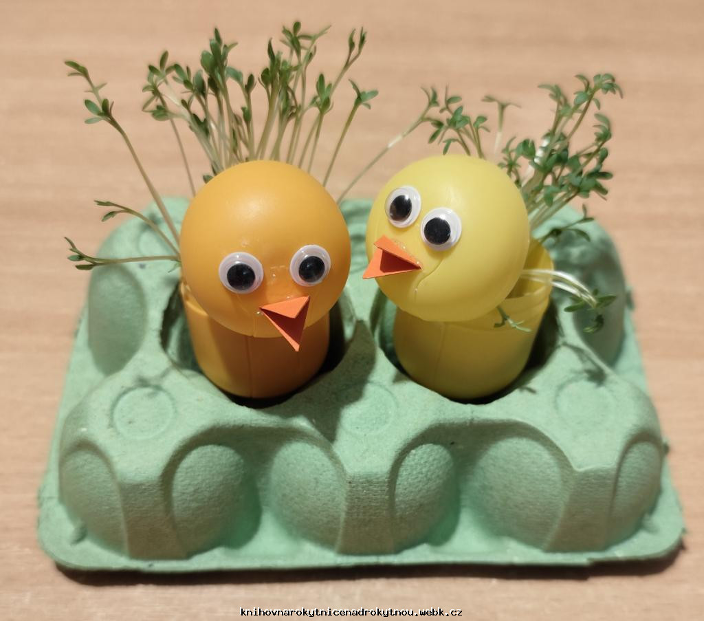 Vyráběli jsme krásná žlutá kuřátka. Kdo pečlivě zaléval, mohl se těšit ze zelené jarní dobroty - řeřichy.